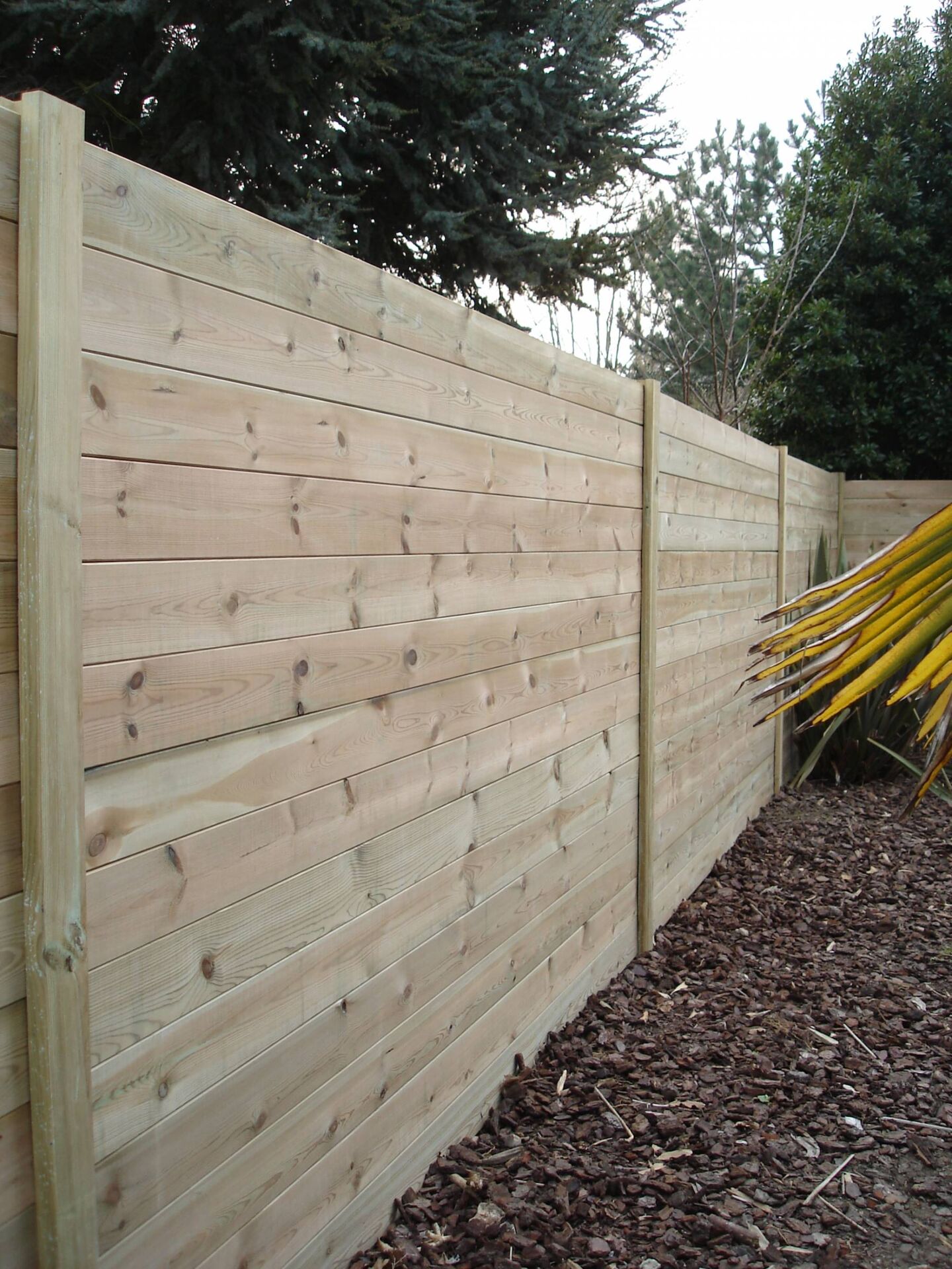 clôtures occultantes avec panneaux en bois sont traitées pour résister aux aléas climatiques et aux insectes.
