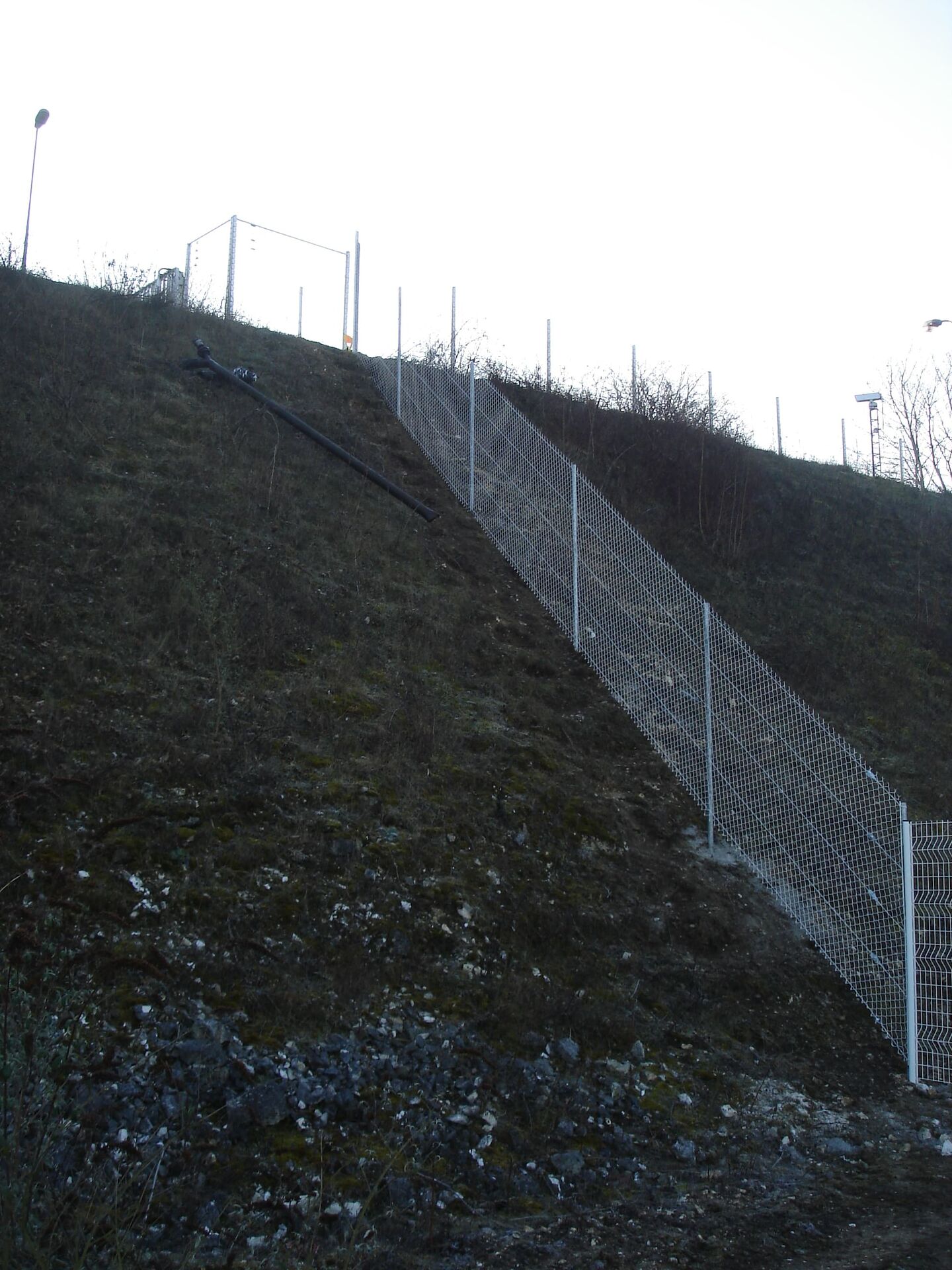 L'installation de panneaux soudés rigides avec poteaux à encoches permet un maintien parfait du linéaire et une pose avec occultation.