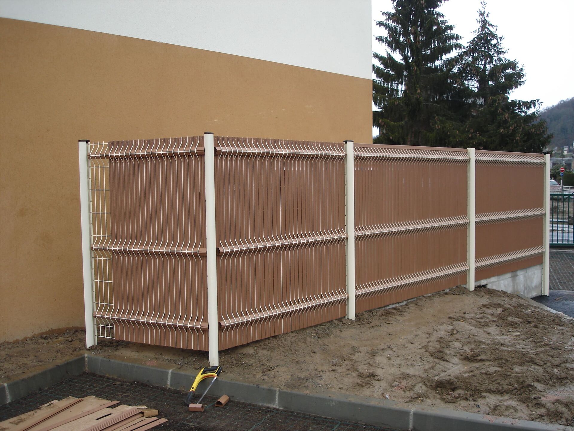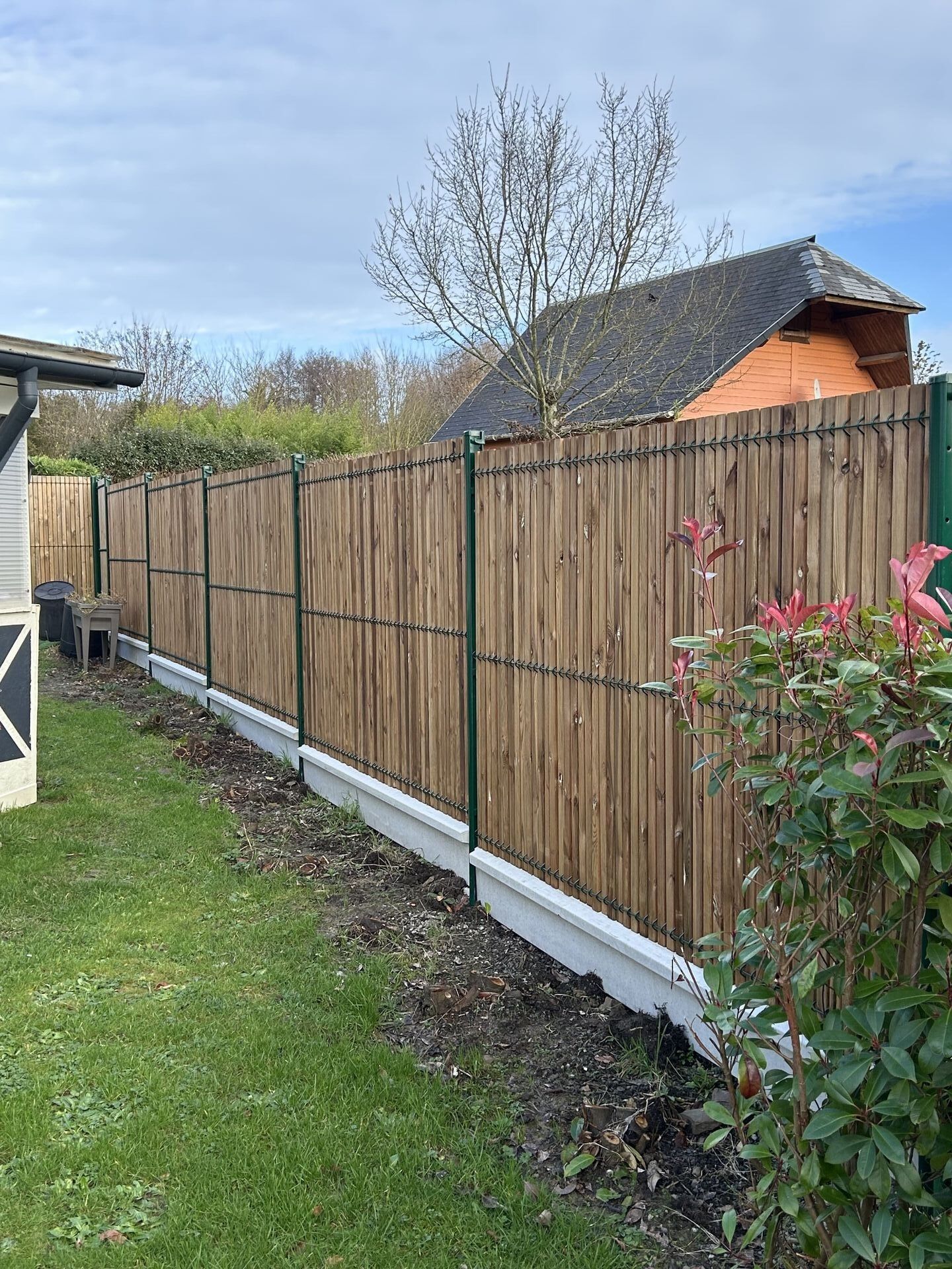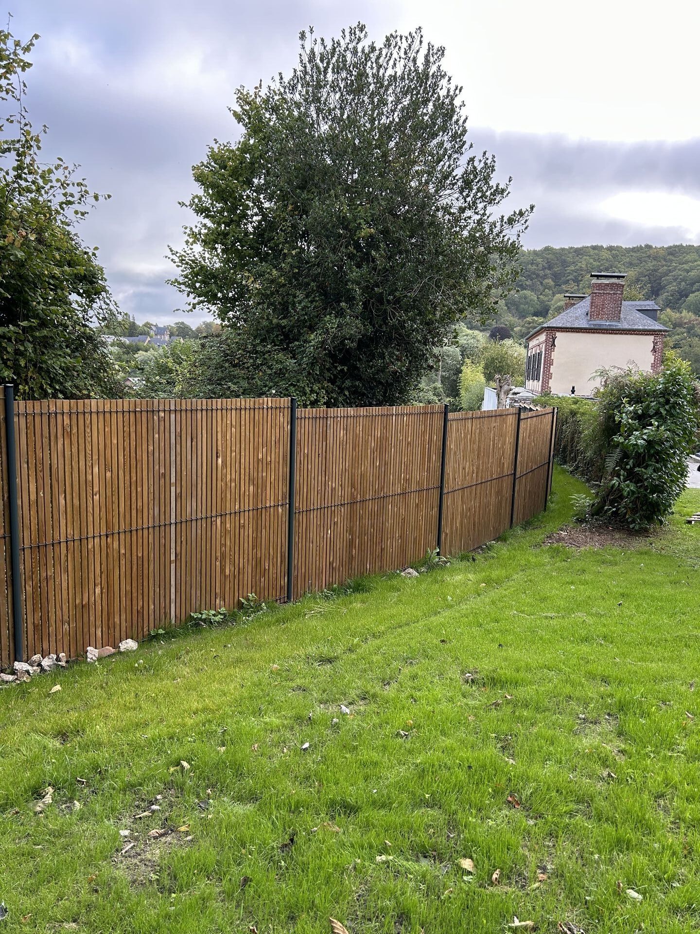 L'Installation de Clôture occultante mixte acier et bois, lames en bois et Poteaux métalliques à Lieurey dans l'Eure 27 et ses Alentours garantit une délimitation élégante de votre propriété.