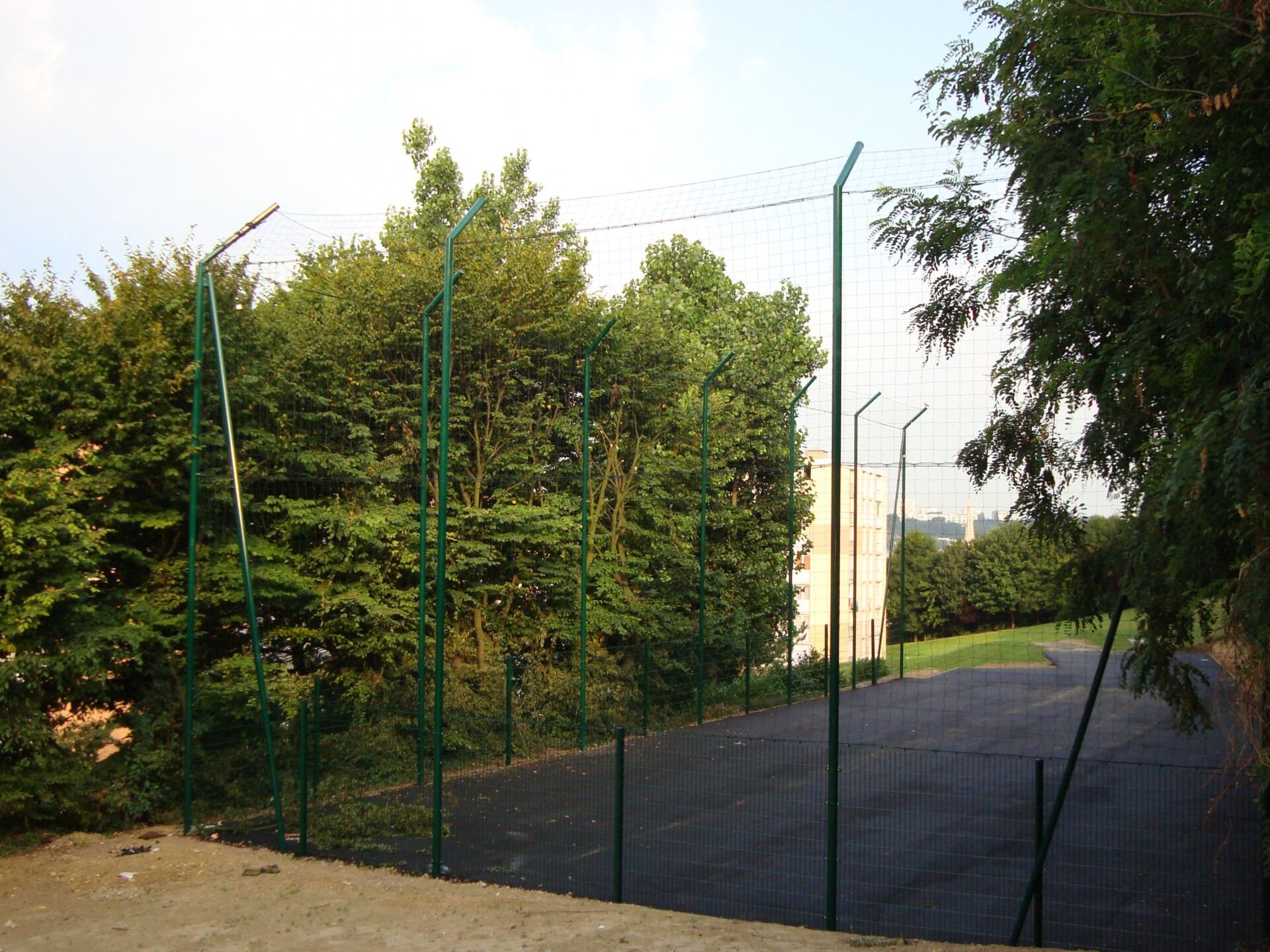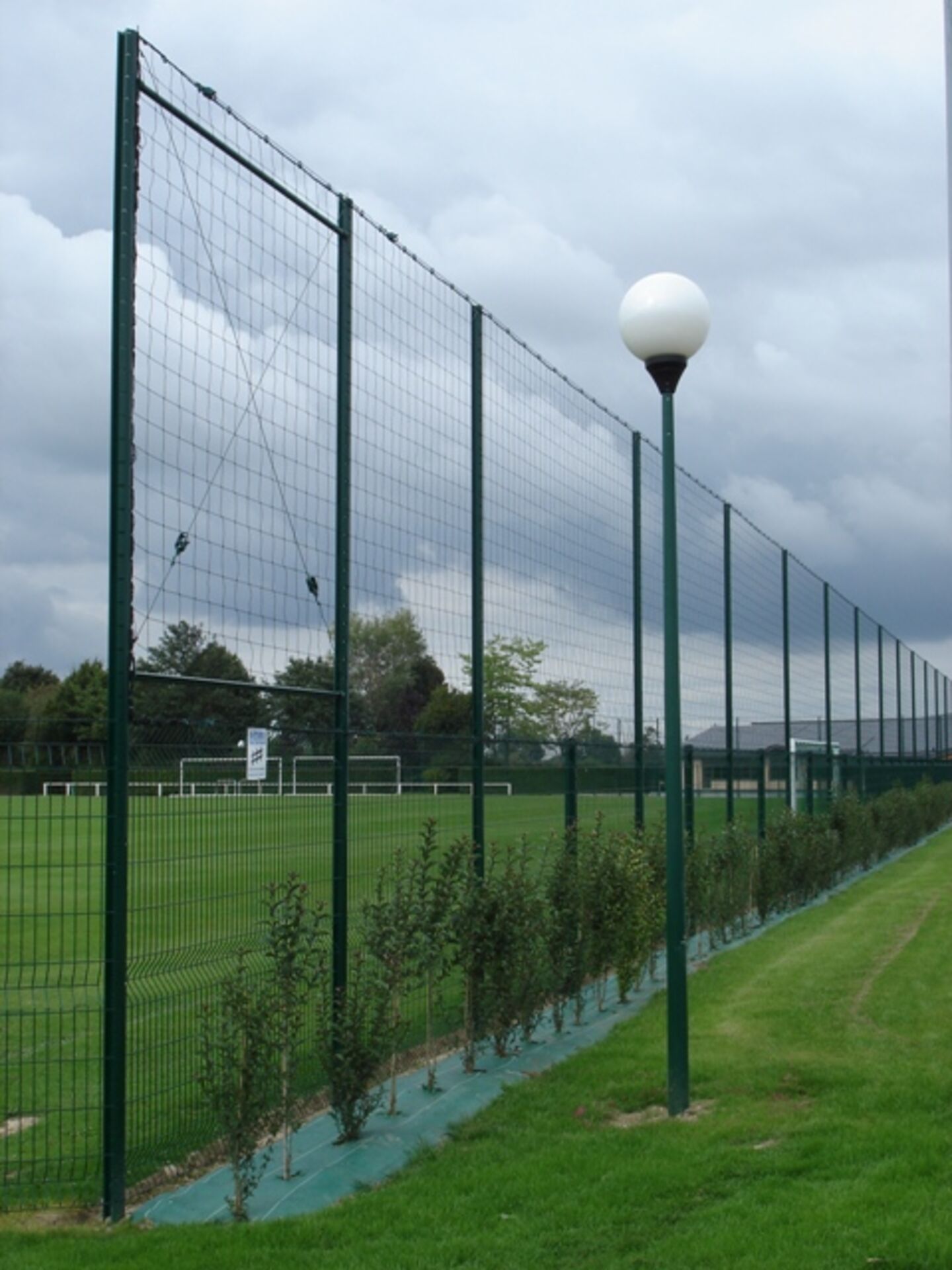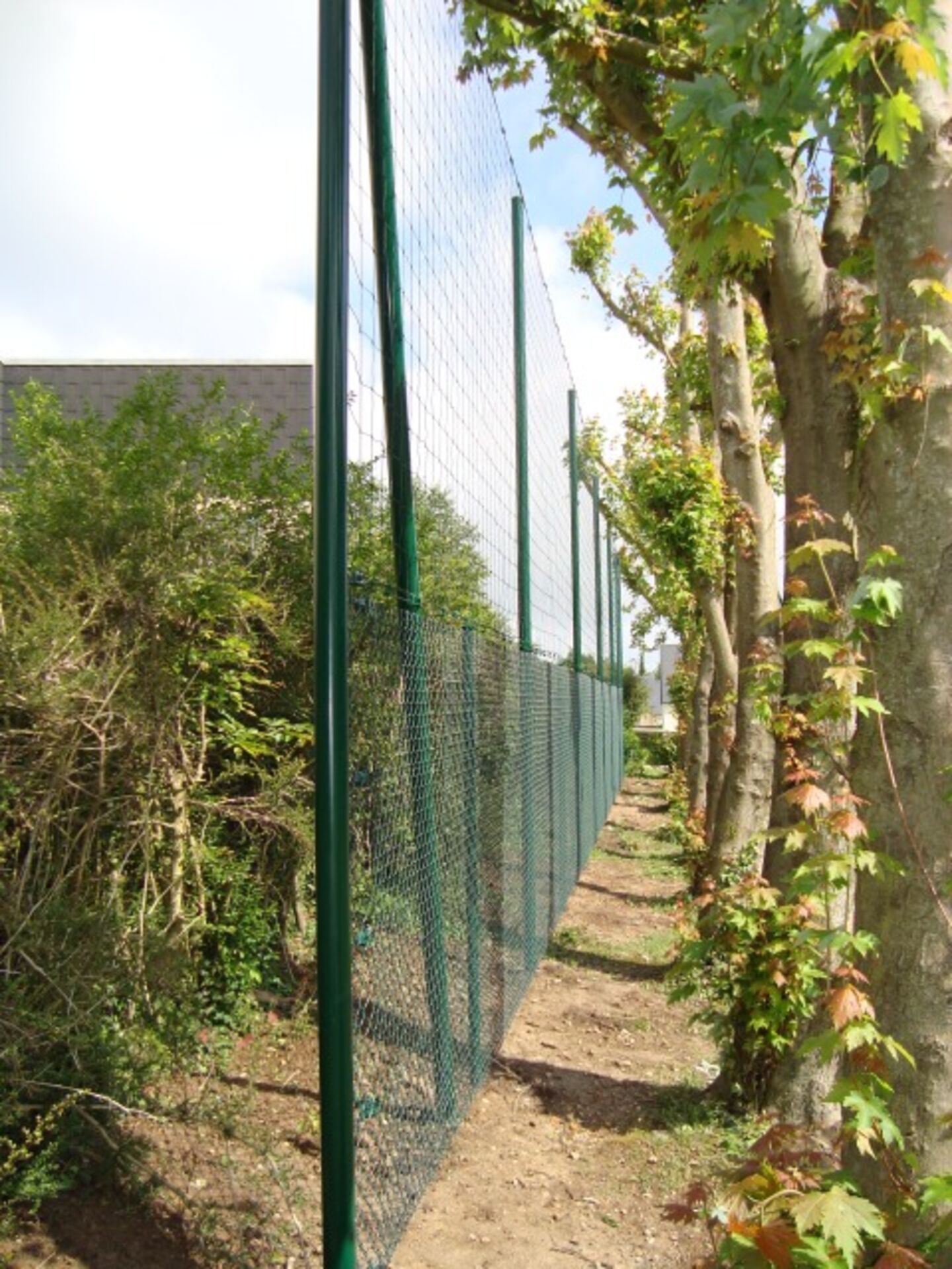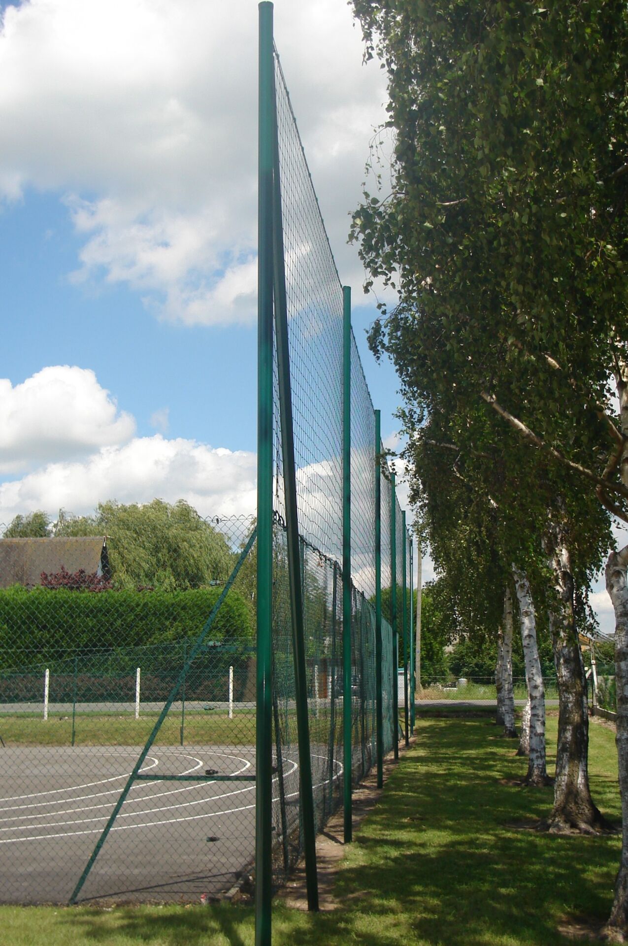 Sous le filet, sur une hauteur généralement de 2m, nous trouvons soit un grillage renforcé, soit des grilles rigides à doubles fils.